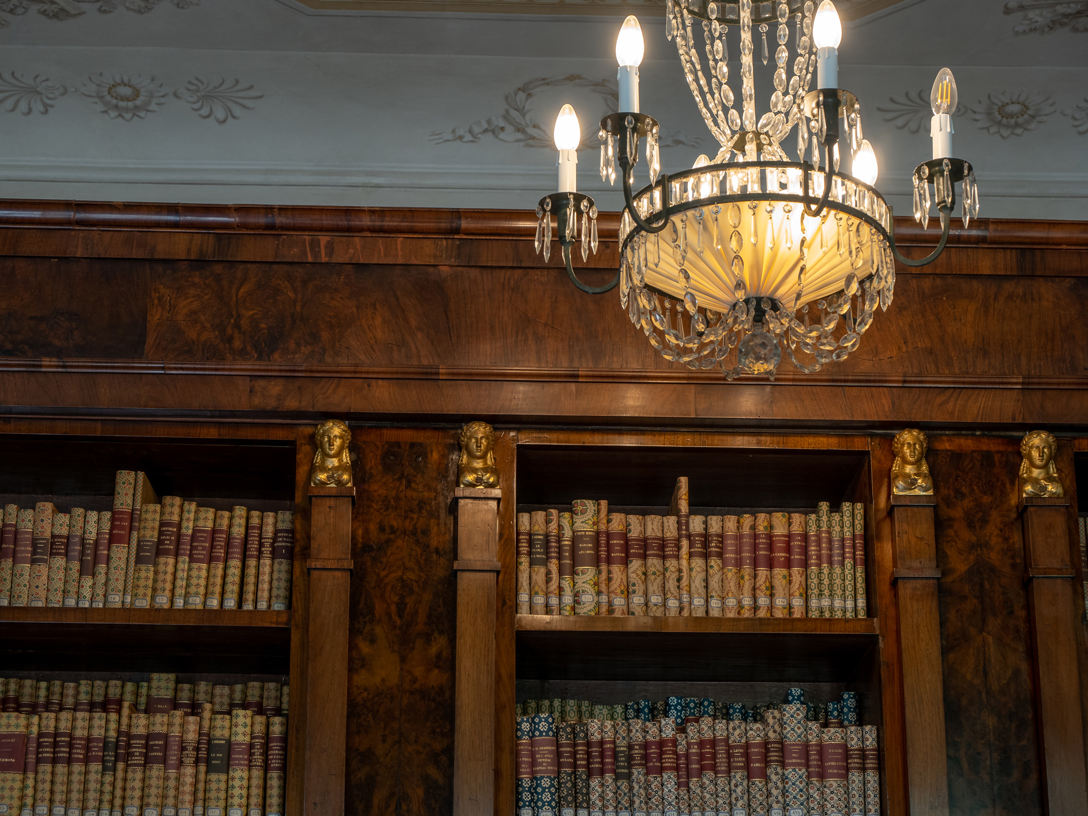Deposito di cultura e sapere, questa accogliente Biblioteca custodisce una piccola raccolta di libri provenienti dalla grande collezione di Villa Reale.