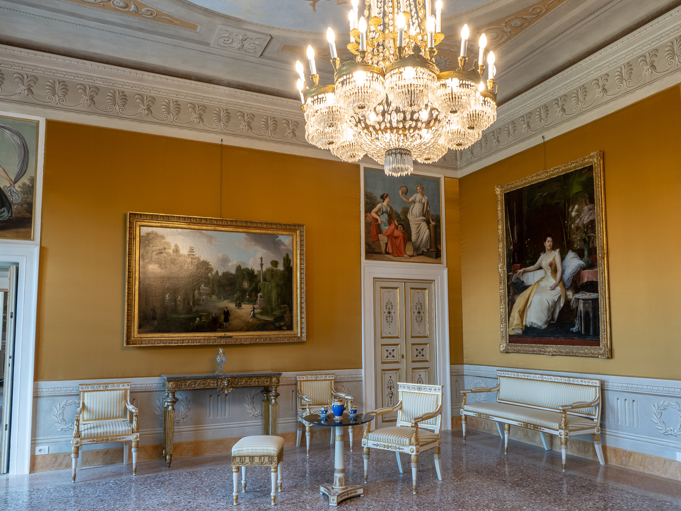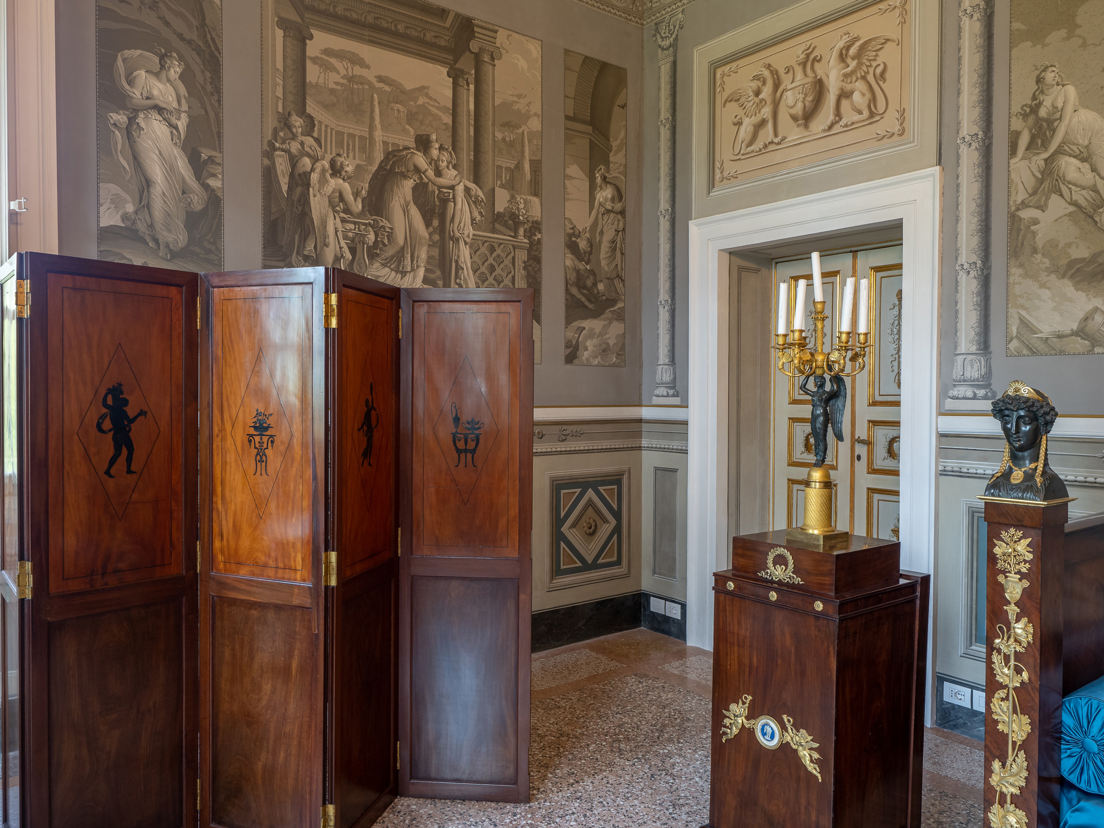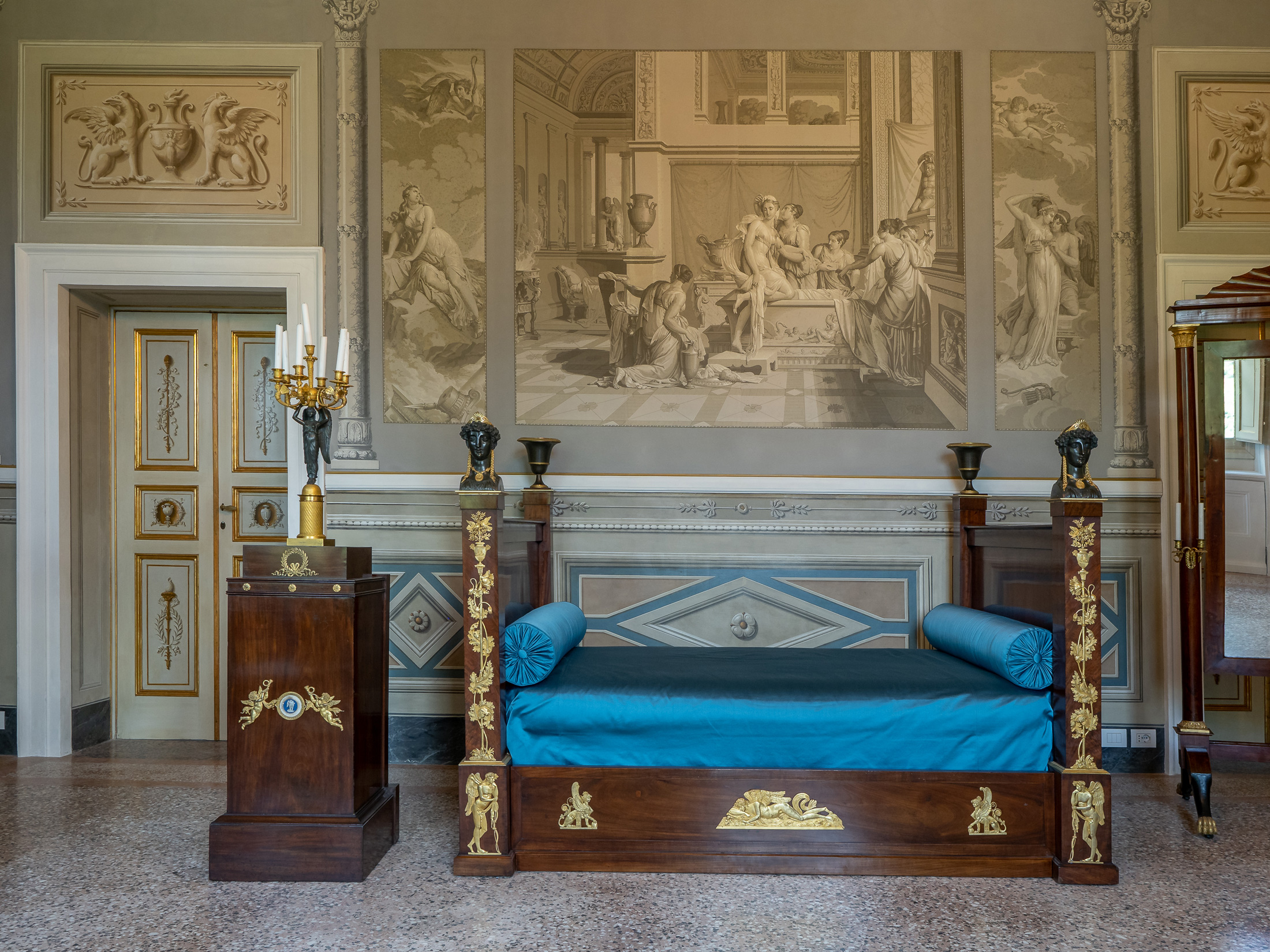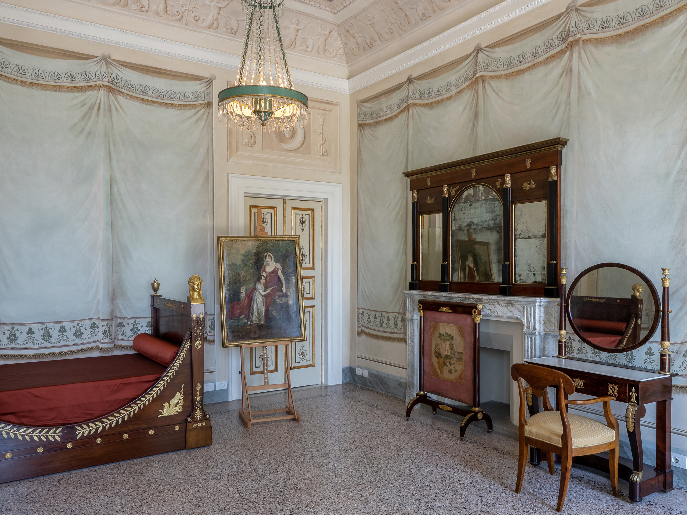 È in questa stanza che dormiva la Principessa Elisa. Di particolare interesse, il letto di manifattura imperiale e i pregiati papier peint panoramique.
