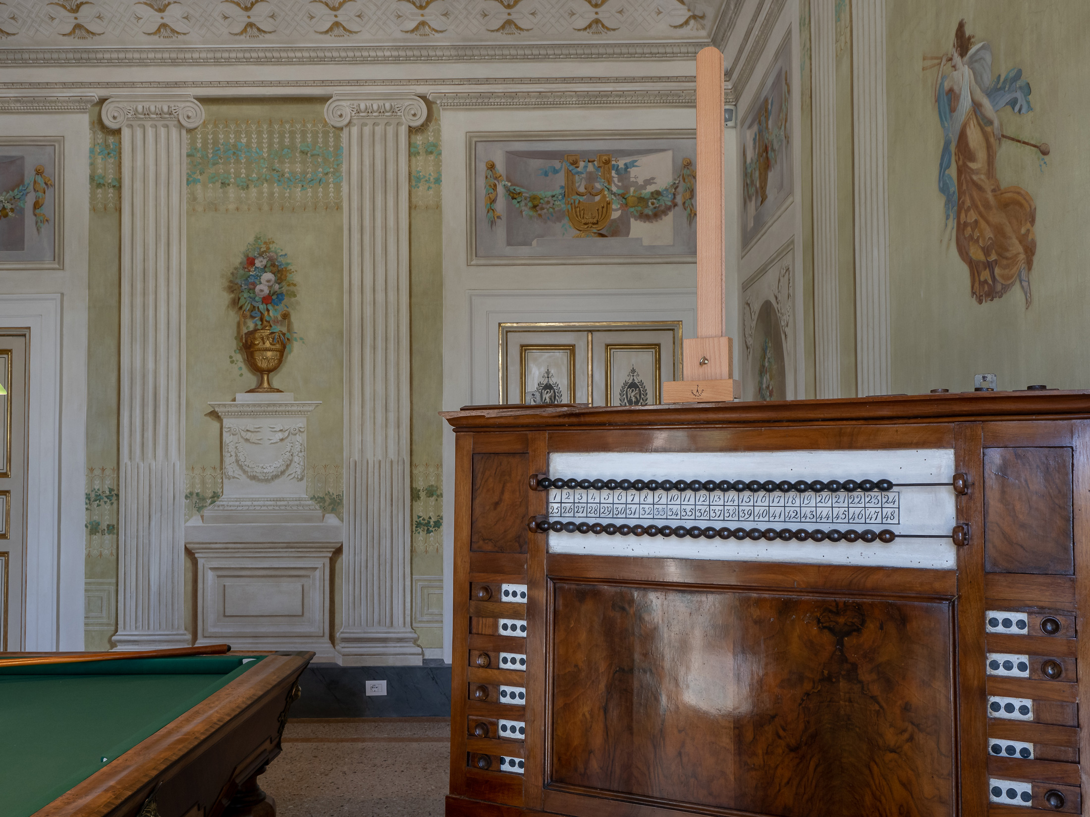 L’antico tavolo da biliardo testimonia la grande passione di Elisa per questo gioco.